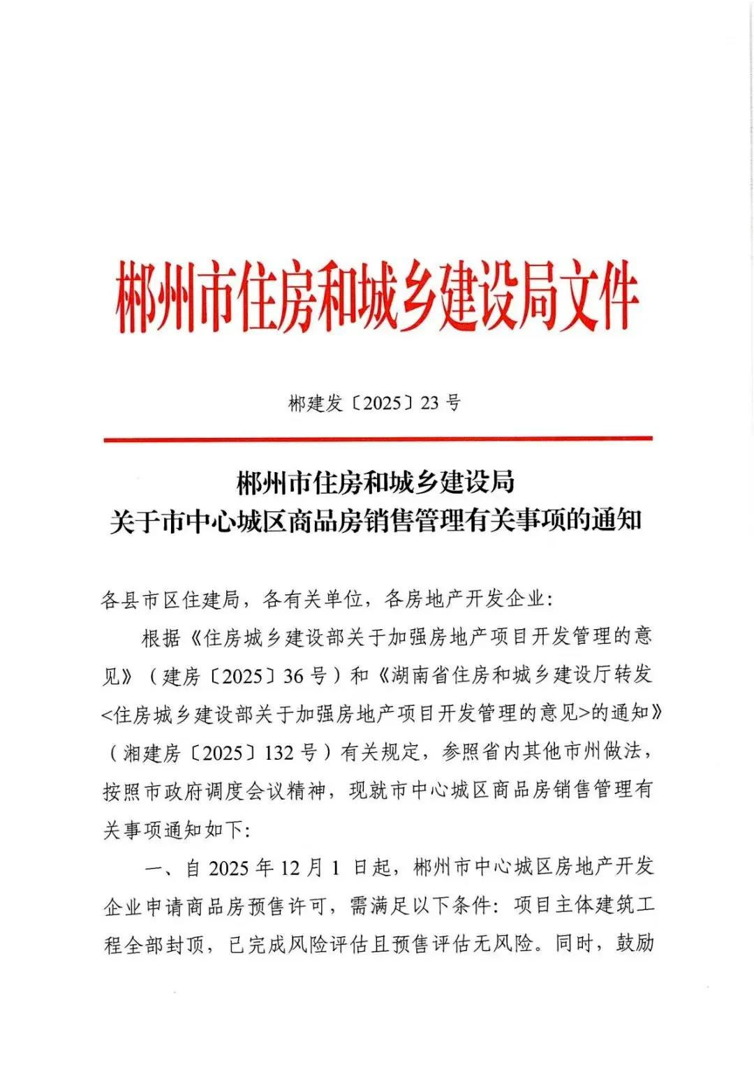 郴州楼市新规!不封顶不准卖房!鼓励现房销售!