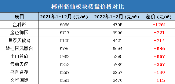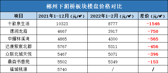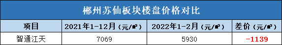苏仙岭板块智通江天2022年1-2月网签均价相比2021年降幅超过1100元/㎡,只能说确实狠。