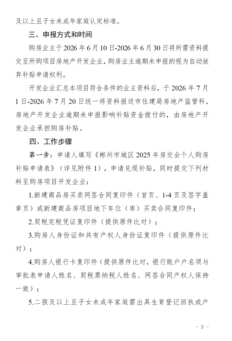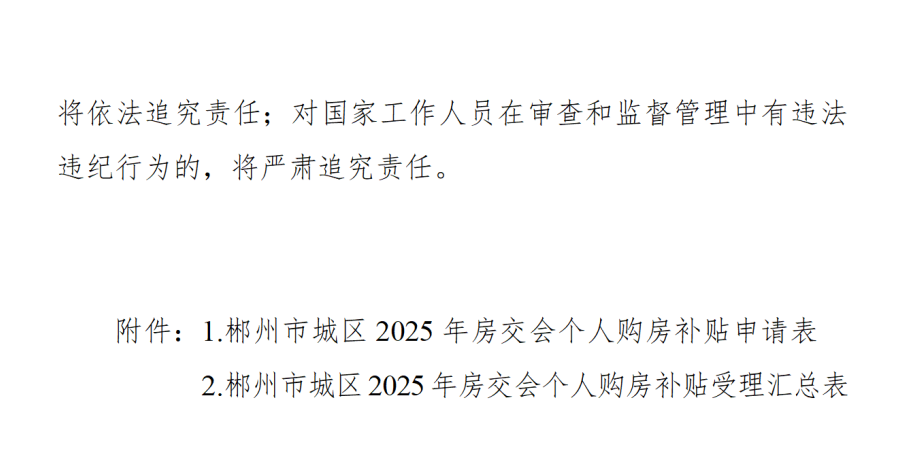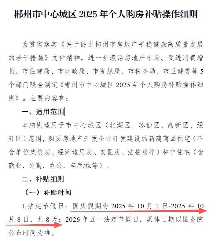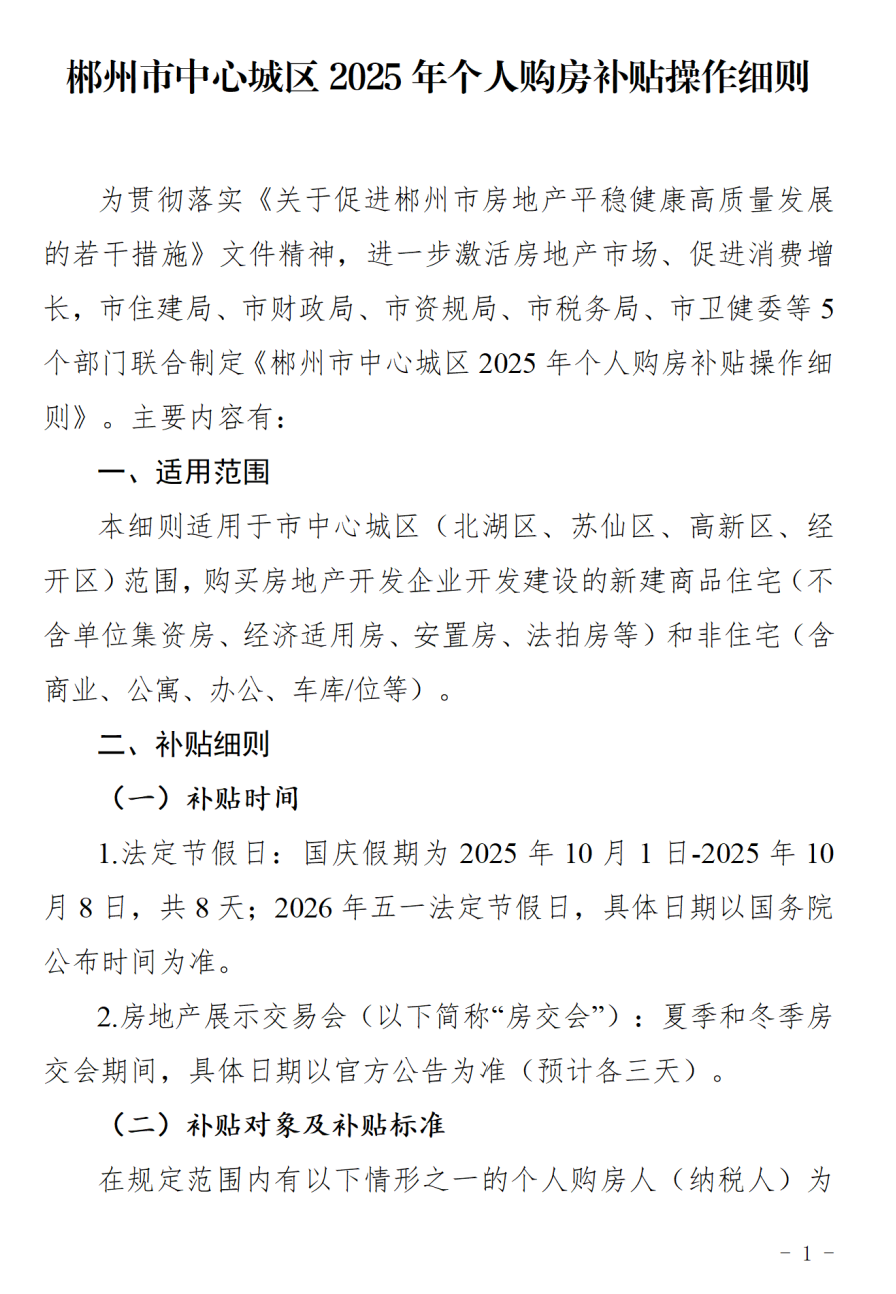 以下为《郴州市城区2025年个人购房补贴操作细则》原文↓↓↓