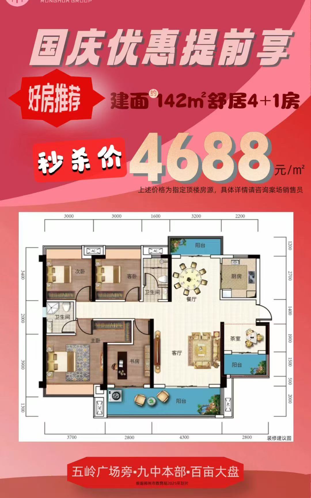 优惠政策:5套特惠一口价房源,4980元/㎡。