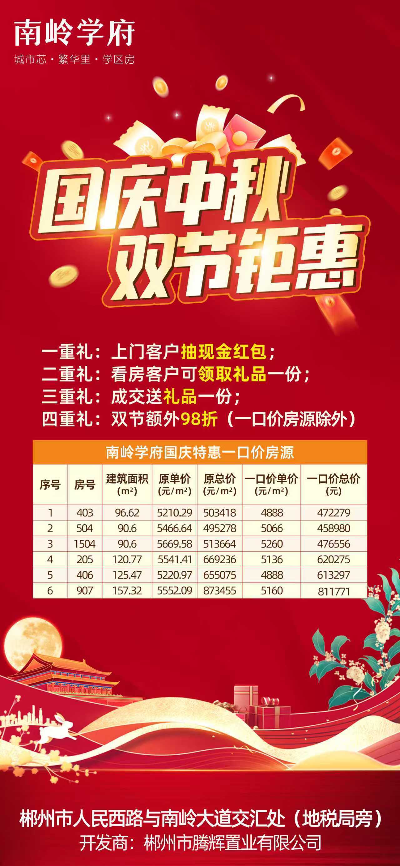 郴州楼市年度抄底机会来了!国庆、中秋双节置业钜惠风暴,政企联动,诚意“价”到!