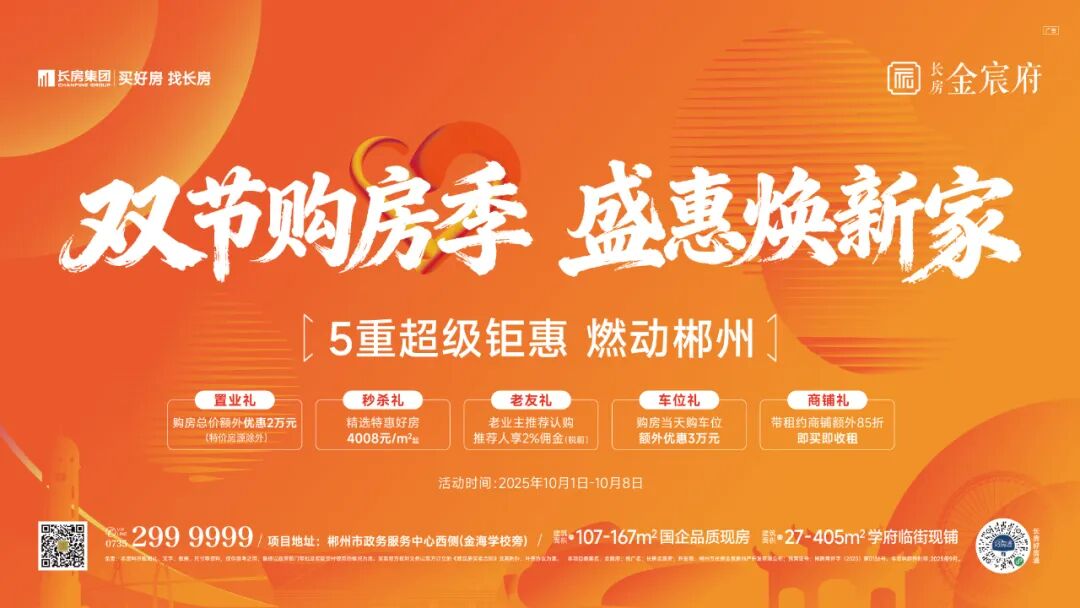 长房金宸府雄踞城东核芯地段,毗邻郴州市政务服务中心、苏仙区行政中心,尽享城市发展红利。周边三横六纵主干路网,快捷畅达全城。近邻体育中心,湘超赛事、文艺演出等举步即达,更有商业、医疗、教育等优质资源环伺,生活便利性毋庸置疑。 城东板块实景图 家,是容纳全家人欢笑的容器。长房金宸府于社区内精心规划全龄段休闲活动空间与配套设施,从孩童的梦幻游乐场,到青年的有氧跑道、篮球场、羽毛球场、架空层健身区,再到长者的静谧交流空间,让社区成为承载亲情、友情的温暖生活场。 项目实景图 长房金宸府深研人居需求,户型设计格局方正、动静分区、采光通风俱佳。以约107㎡爆款三房为例,将居住的舒适度与功能性最大化,无论是温馨三口之家,还是二胎家庭的成长空间,亦或是与父母同享天伦之乐,都能在此得到完美满足。 项目约107㎡样板间实景图 美好的社区生活,离不开精细化的服务。长房金宸府引入品牌物业服务团队,秉持“以人为本”的服务理念,从安保、保洁、维修到活动组织,提供全天候、全方位的暖心关怀,守护每一位业主的日常。 实拍图 福利难得!优惠难得!好礼难得! 这个假期,不妨亲临长房金宸府 让理想之家,从蓝图变为触手可及的幸福现实!