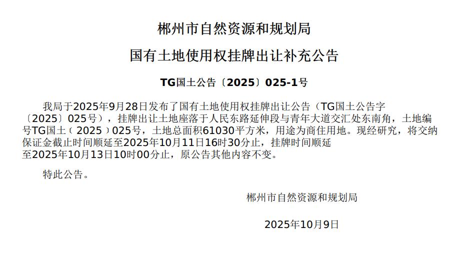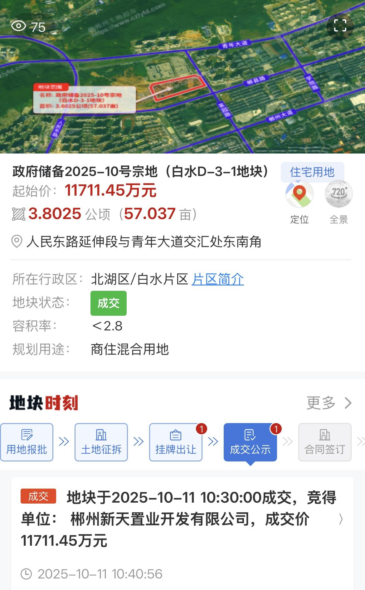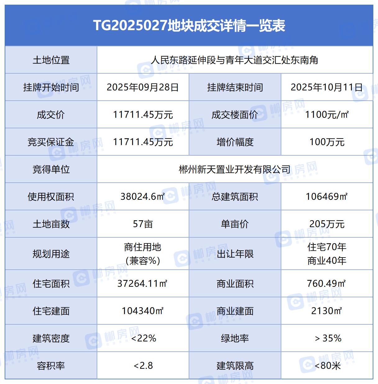 2025年10月11日,郴州新天置业开发有限公司以1.17亿元成功竞得城东优质商住用地。