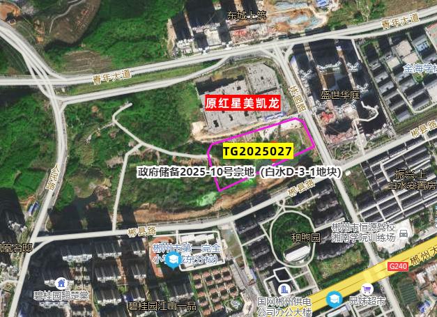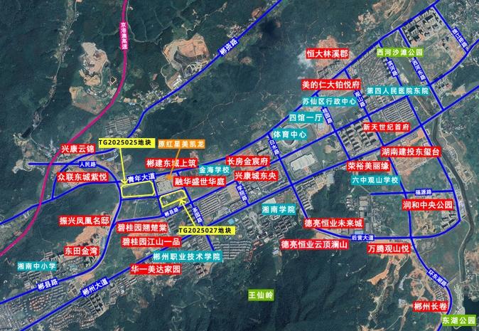 TG2025027地块位于茶园路与郴县路交汇处西北侧,北接原红星美凯龙,总面积38024.6㎡(约57亩)。
