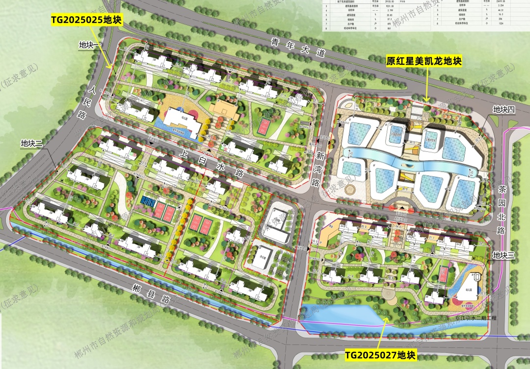 根据2023年底公布的郴州市白水片区控制性详细规划,上述两宗地块将与原红星美凯龙及周边土地协同开发,共同打造一个集住宅、公寓、商业、幼儿园于一体的大型综合性社区。建成后,预计总户数将突破3000户。