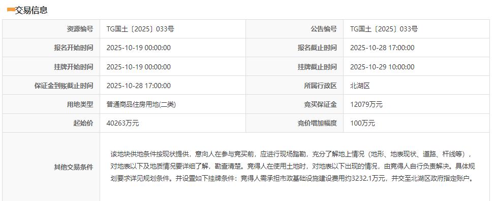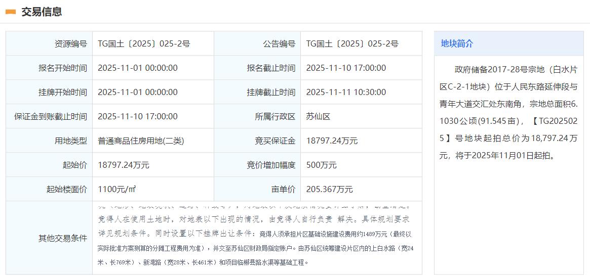 打响本轮土拍“第一枪”的,是将于10月27日出让的TG2025031地块。