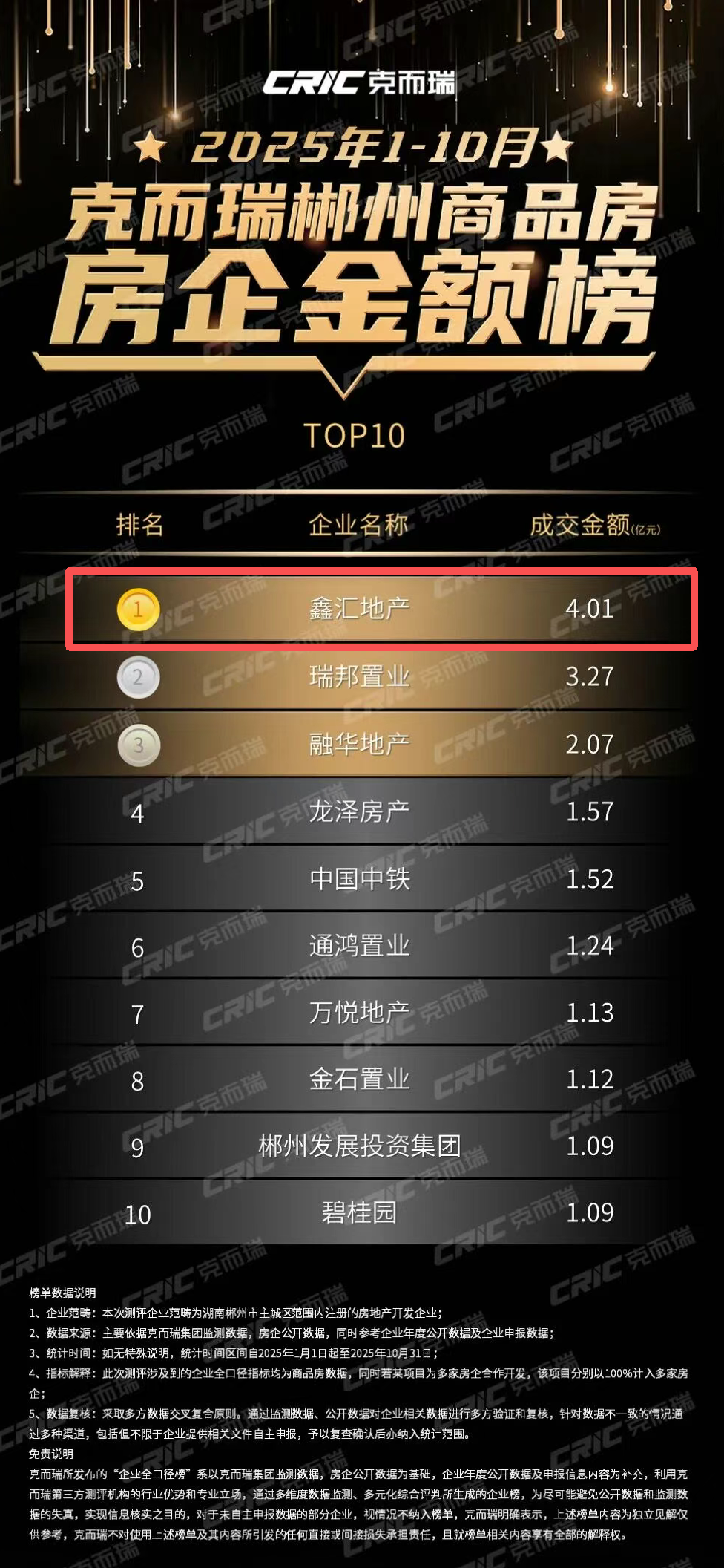 近日,2025年1-10月湖南省商品房销售数据正式发布。在省会长沙之外的地州市场中,郴州楼市表现抢眼,鑫汇地产及其开发的正和圆项目,凭借“双冠王”佳绩强势出圈,成为全省瞩目的焦点。
