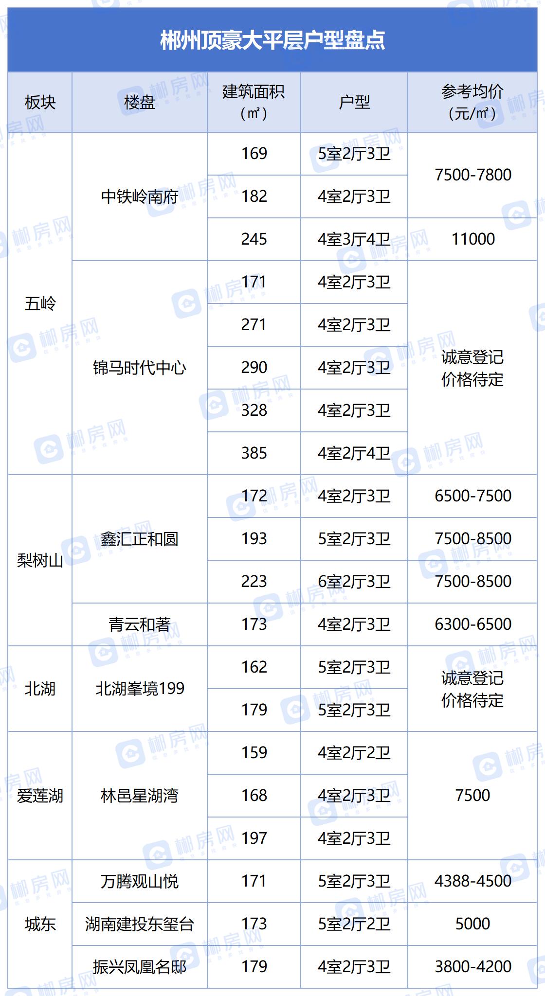 注:上表郴州大平层户型为小编不完全统计,户型售价仅供参考,具体请以售楼处为准,如有纰漏,欢迎评论区留言指正。