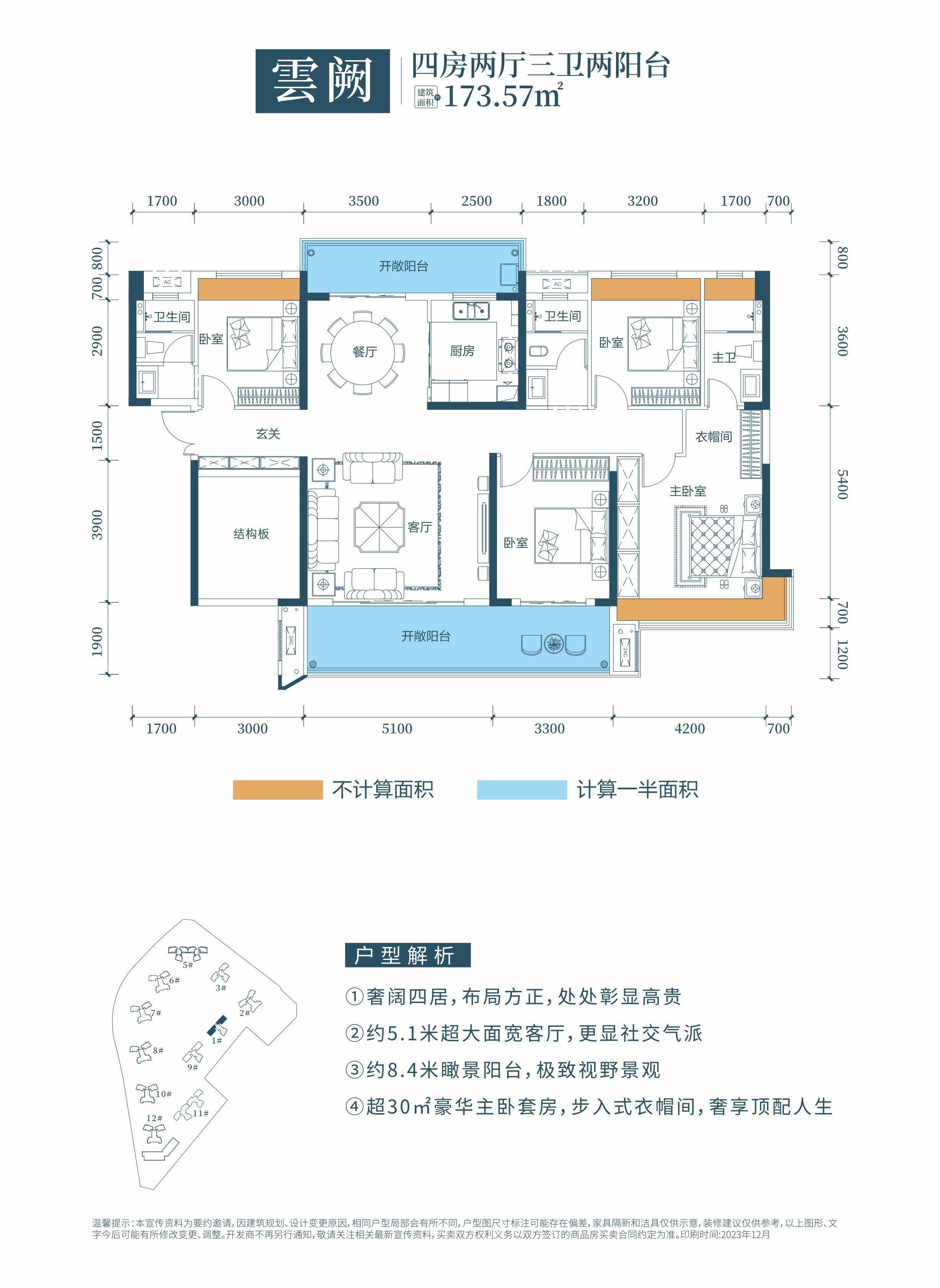 在售大平层户型:建面约173㎡