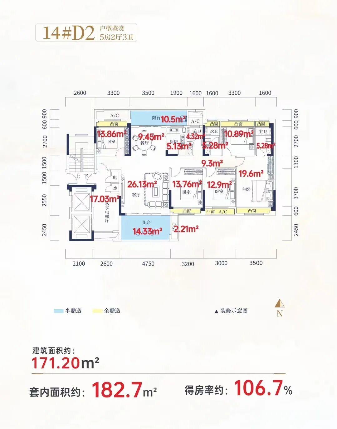 在售大平层户型:建面约171㎡
