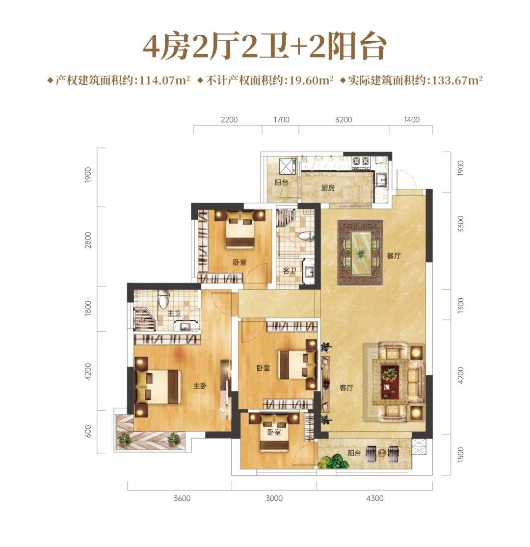 户型:建面约114㎡ 4房2厅2卫2阳台