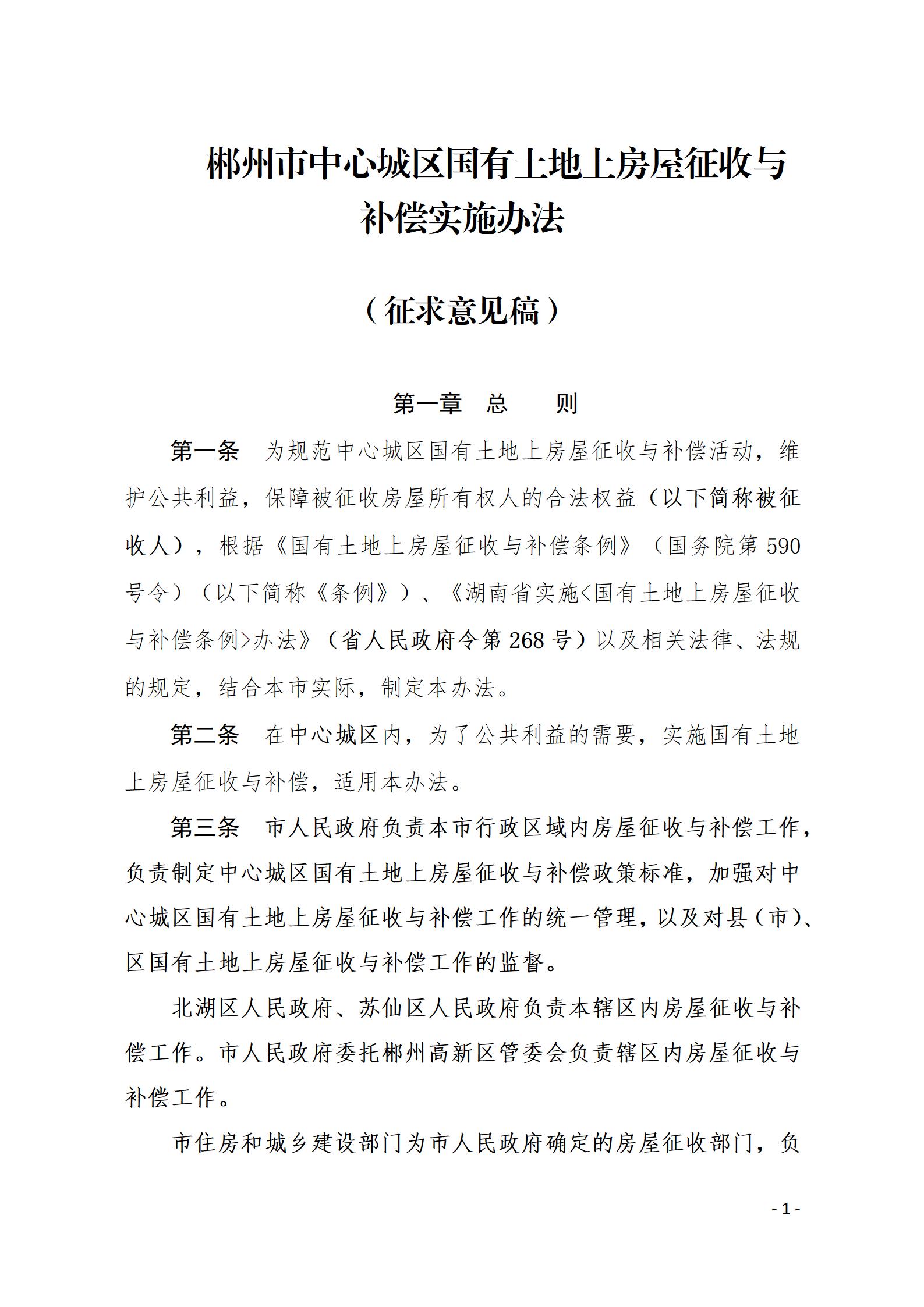 以下是《郴州市中心城区国有土地上房屋征收与补偿实施办法(征求意见稿)》原文件↓↓↓