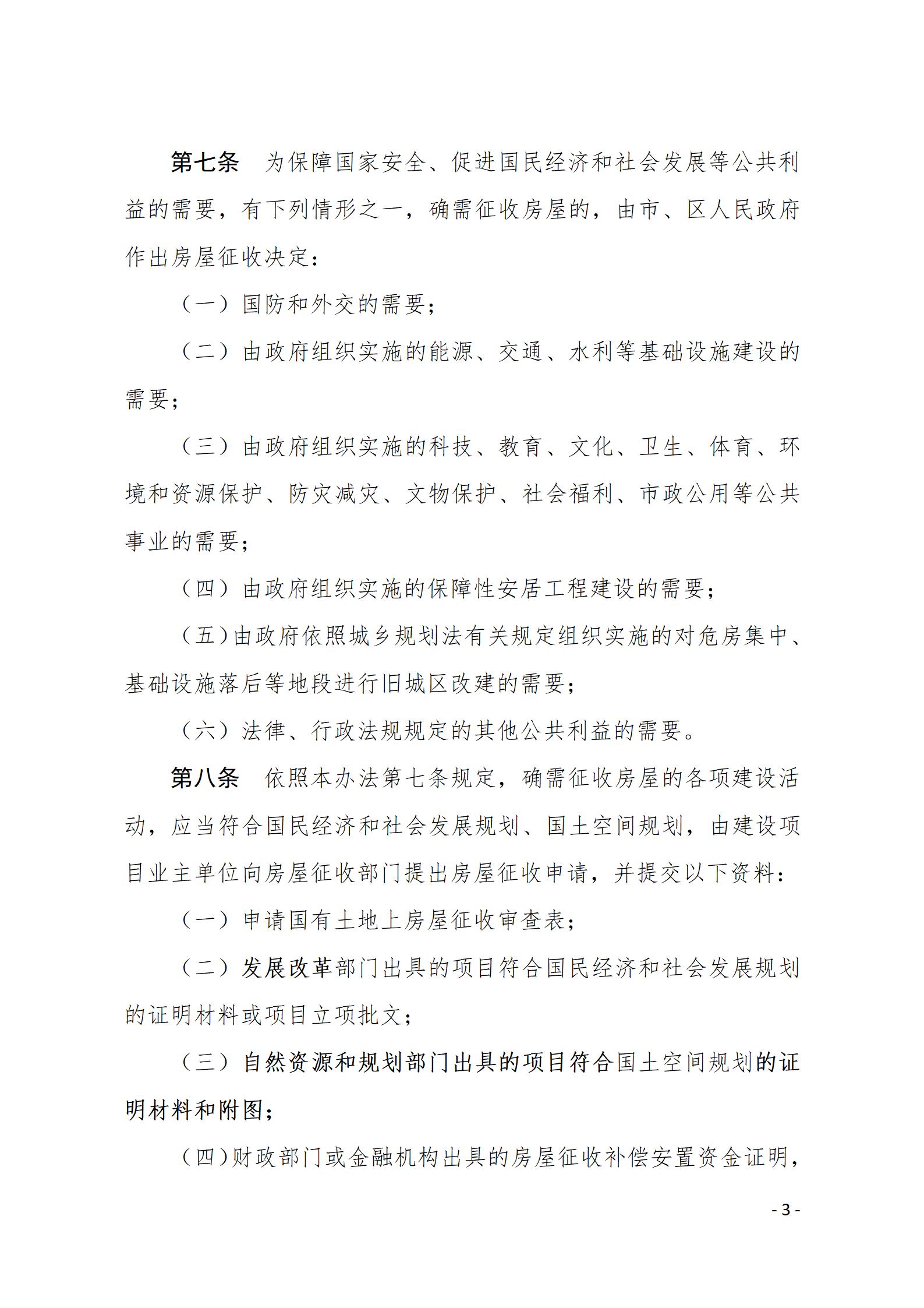 为保障公共利益的需要,确需征收房屋的,符合以下情形之一,由市、区人民政府作出房屋征收决定: