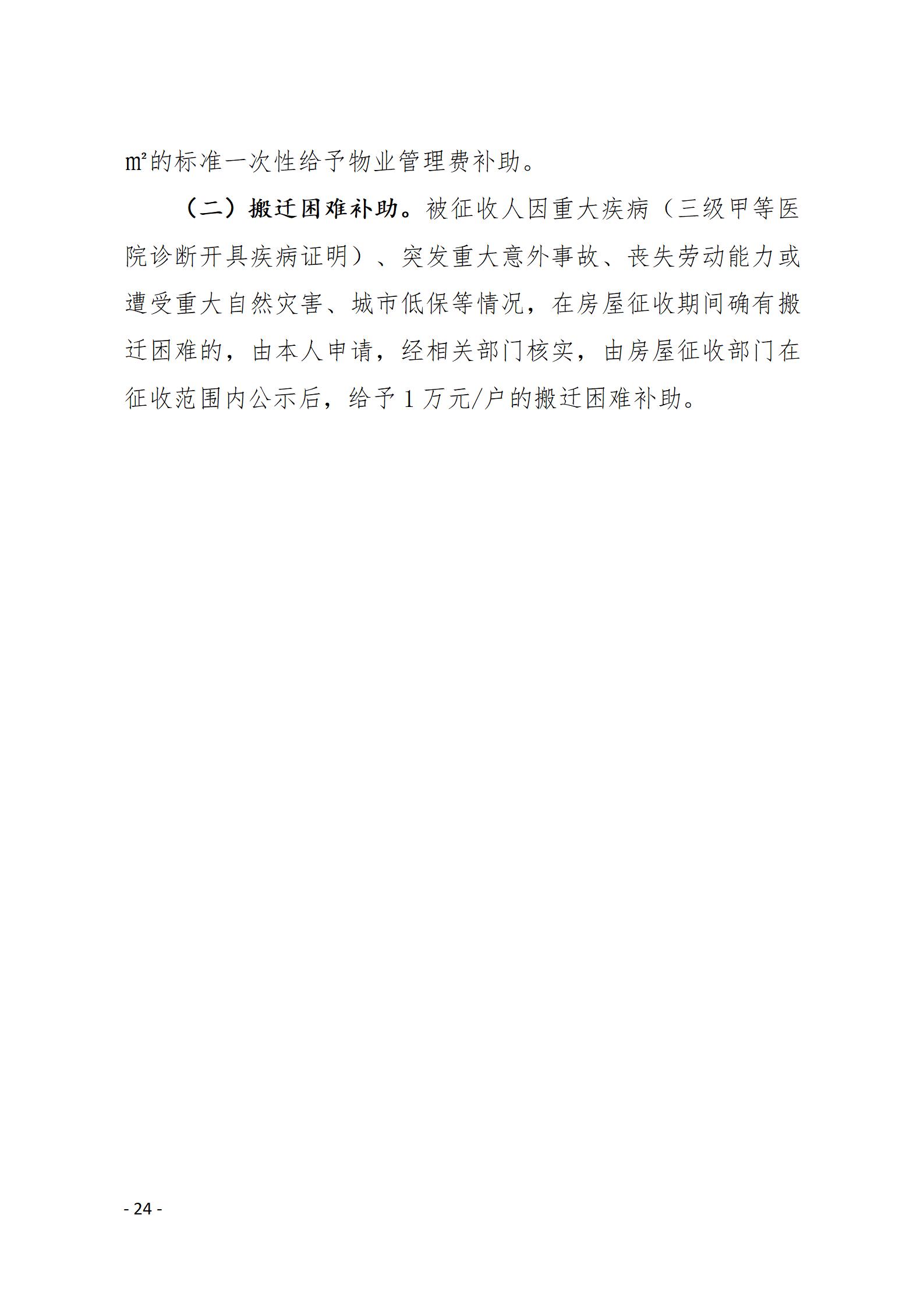 物业管理费补助:对被征收房屋建筑面积按150元/㎡的标准一次性给予补助。